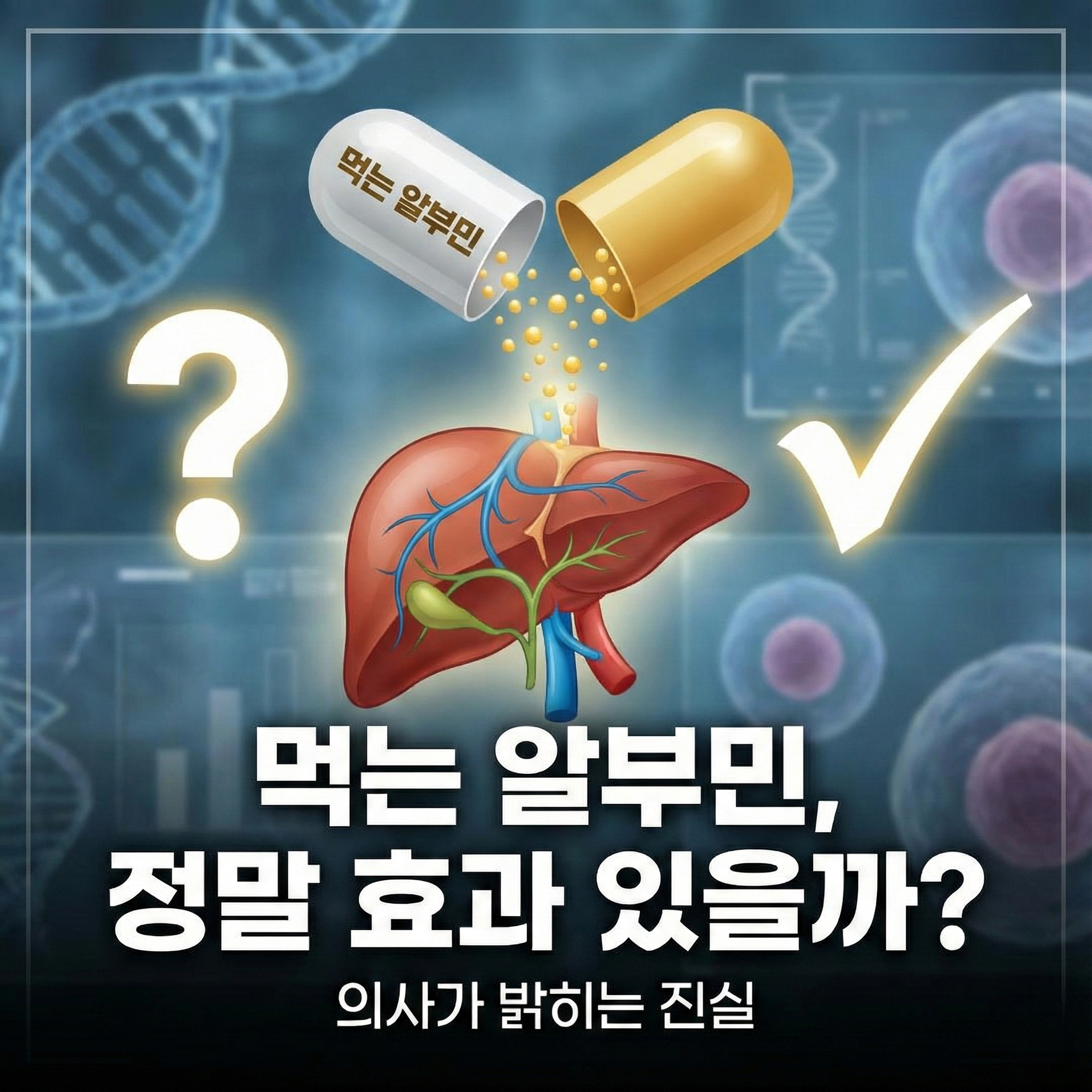 하지만, 간경변증(간경화) 등으로 간 기능 자체가 망가져 '공장'이 멈춘 상태라면, 아무리 좋은 재료(먹는 알부민)를 많이 넣어주더라도 수치는 잘 오르지 않을 수 있습니다.