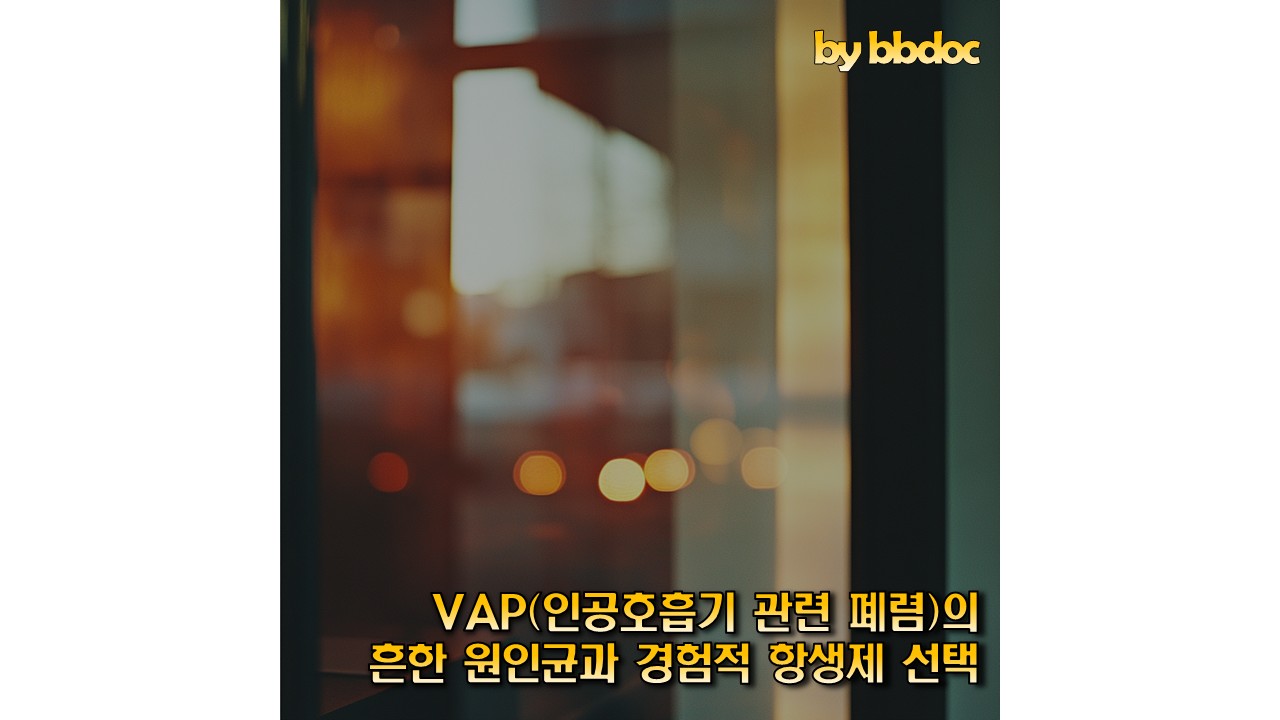 VAP는 인공호흡기를 사용하는 환자에서 발생하는 병원감염 폐렴으로, 다양한 다제내성균(MDR, multidrug-resistant pathogens)이 주요 원인균으로 작용합니다.