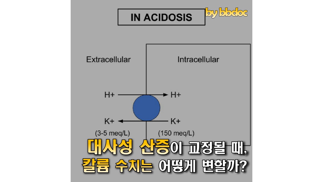 대사성 산증을 치료하여 pH가 상승하면, 칼륨의 이동이 반대로 진행되면서 저칼륨혈증(Hypokalemia)이 발생할 수 있습니다.